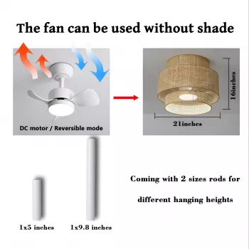 21-Inch Bamboo LED Ceiling Fan with Light, Remote & Timer