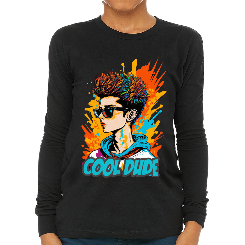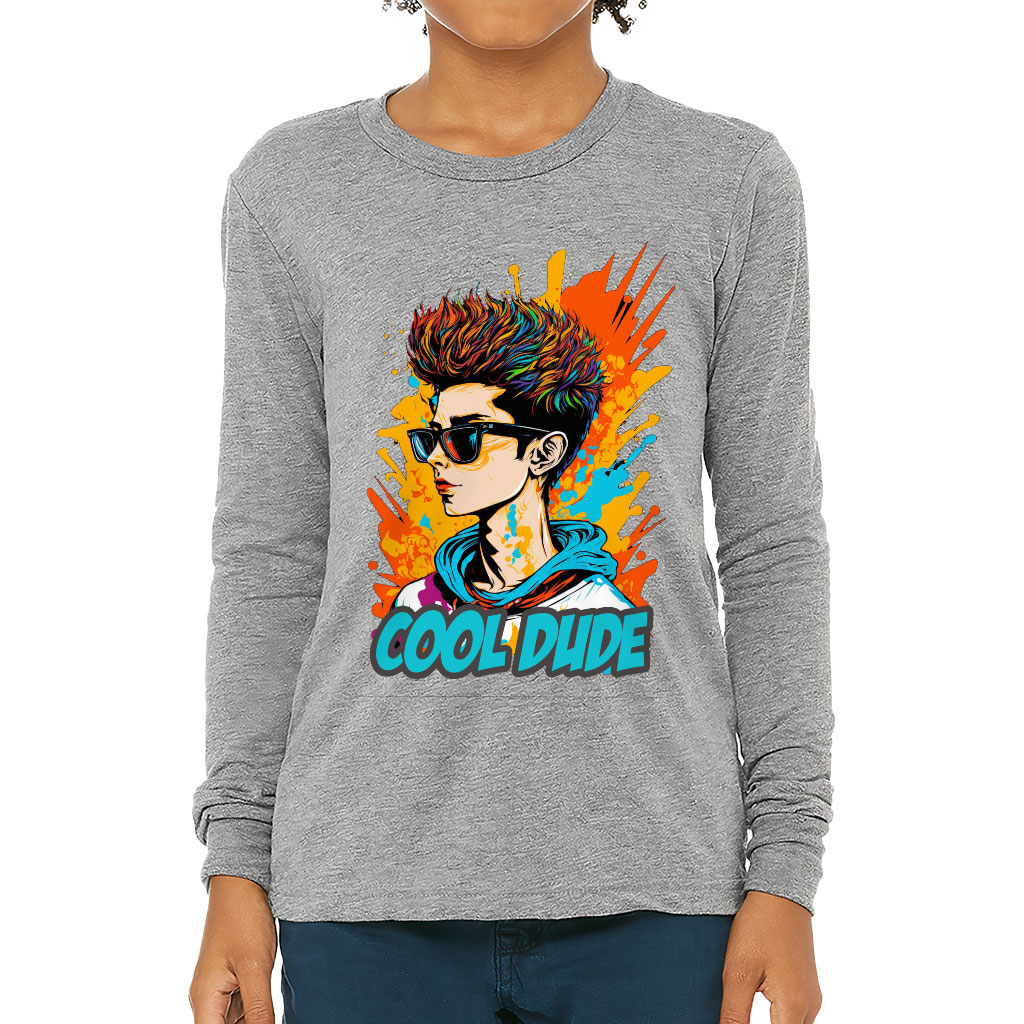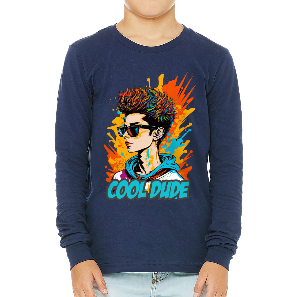 Cool Dude Kids’ Long Sleeve T-Shirt – Trendy T-Shirt – Graphic Long Sleeve Tee
