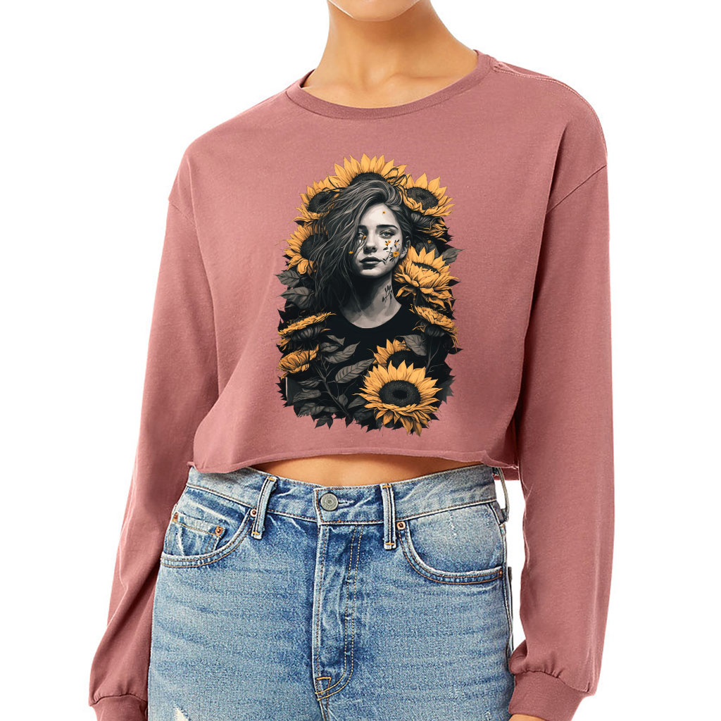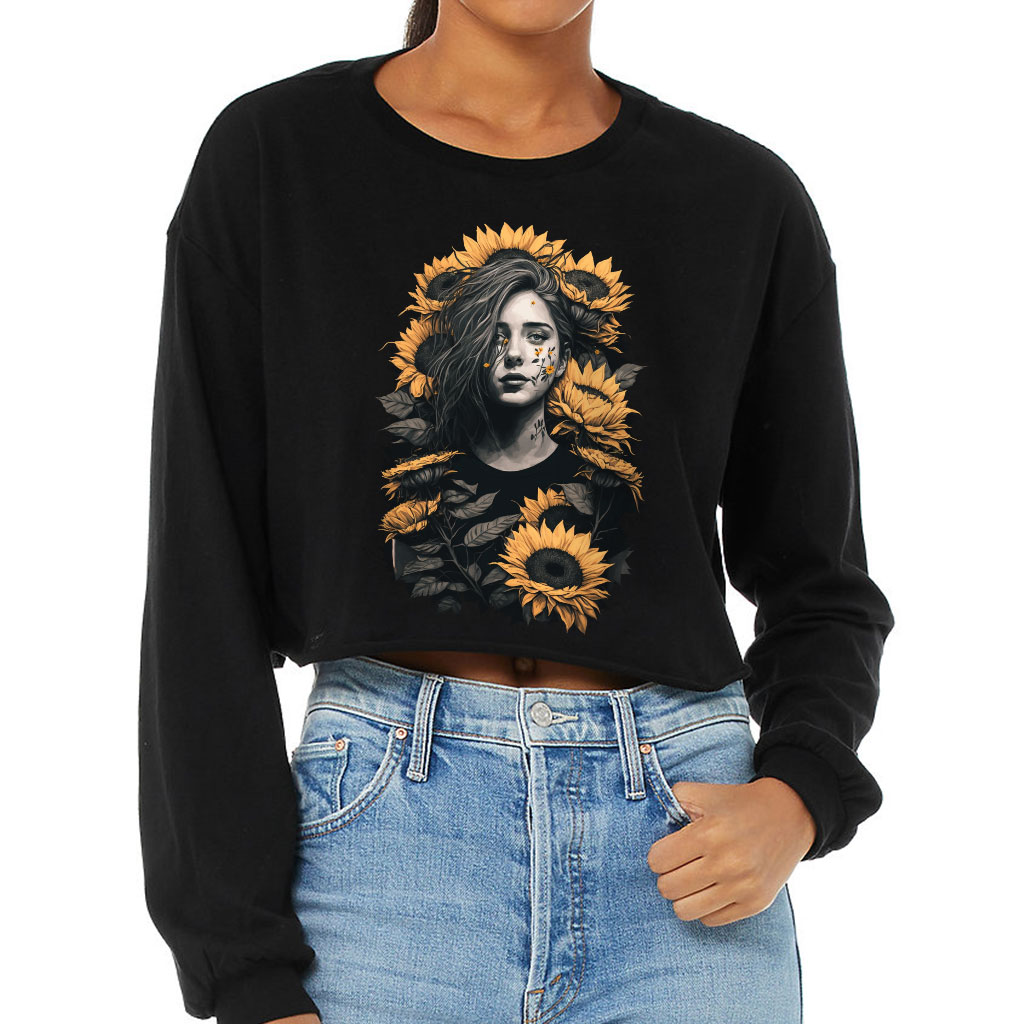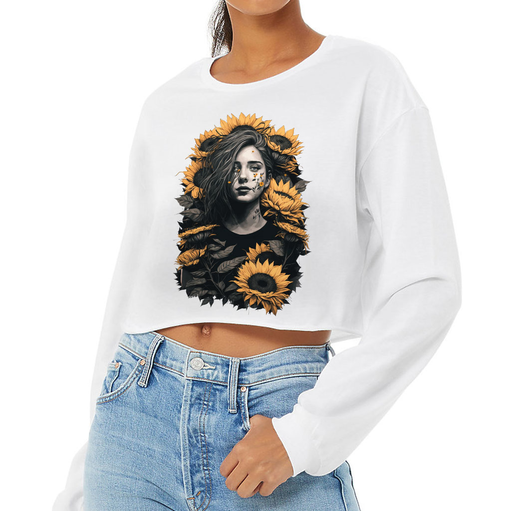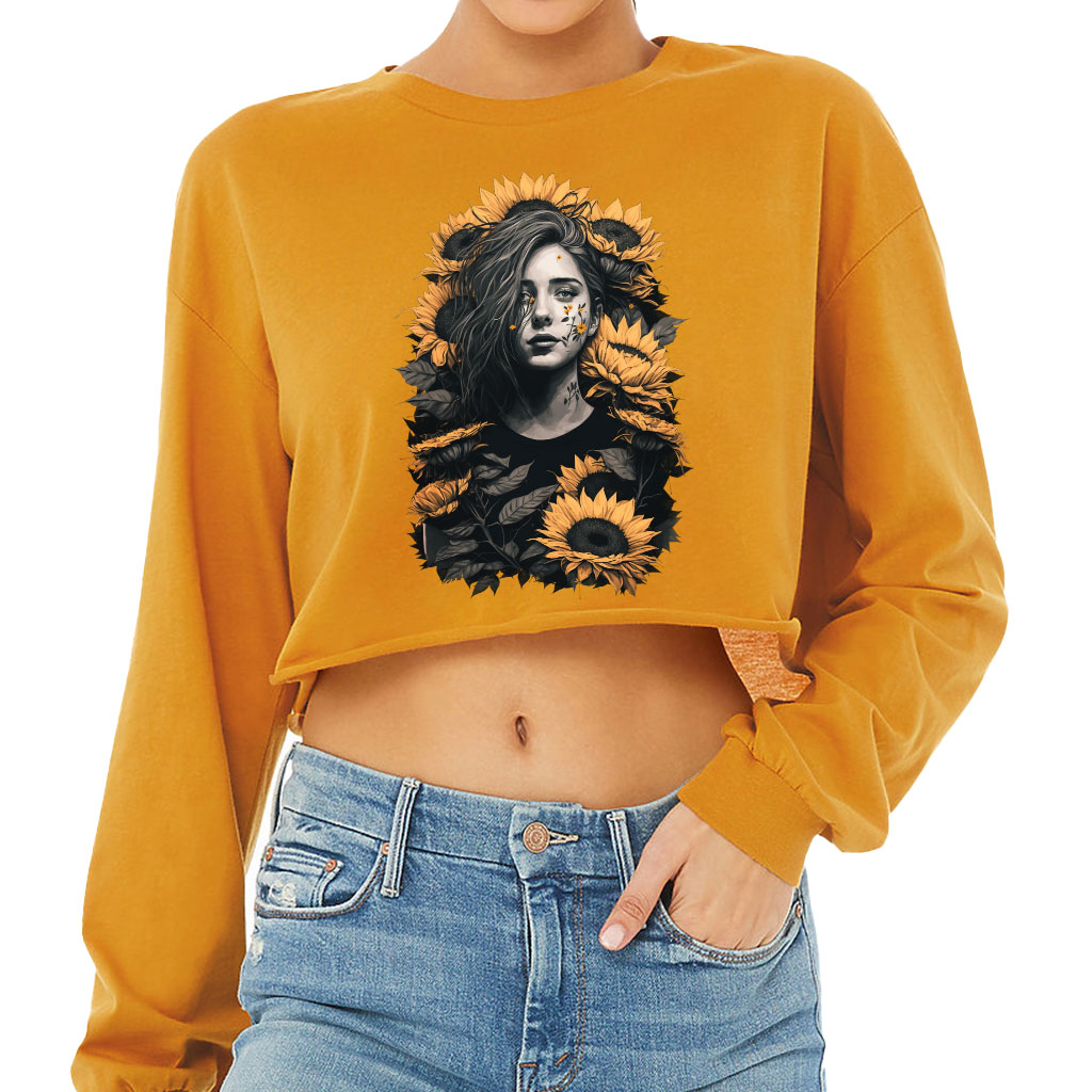 Cute Sunflower Cropped Long Sleeve T-Shirt