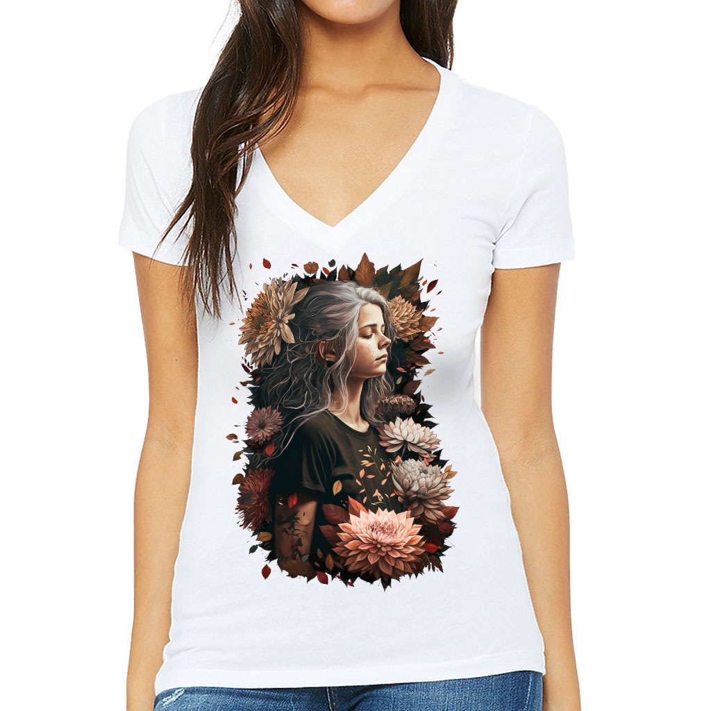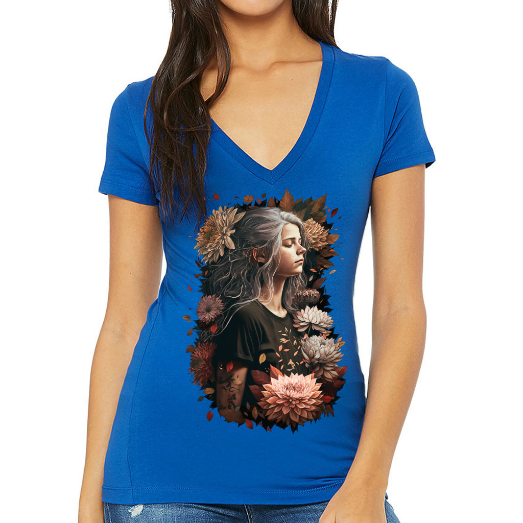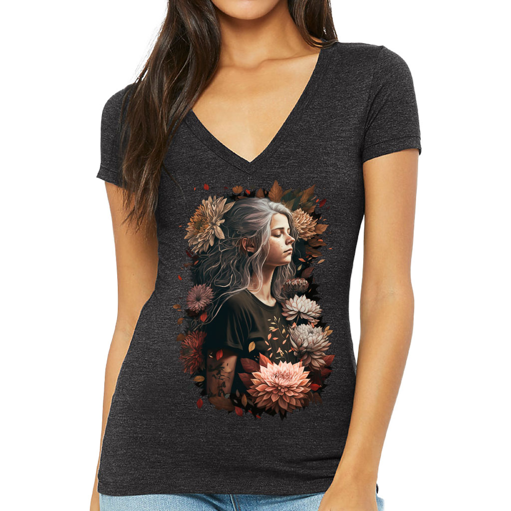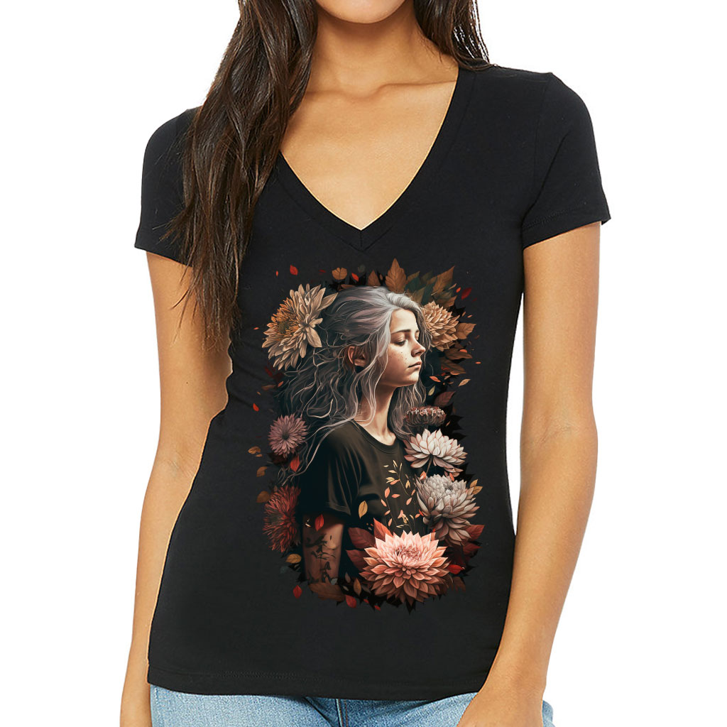 The fabric of our shirt is super soft, lightweight, breathable, and cozy. Dahlia Women’s V-Neck T-Shirt features a modern feminine fit, deep V-neck, short sleeves and superior Airlume combed and ring-spun cotton.