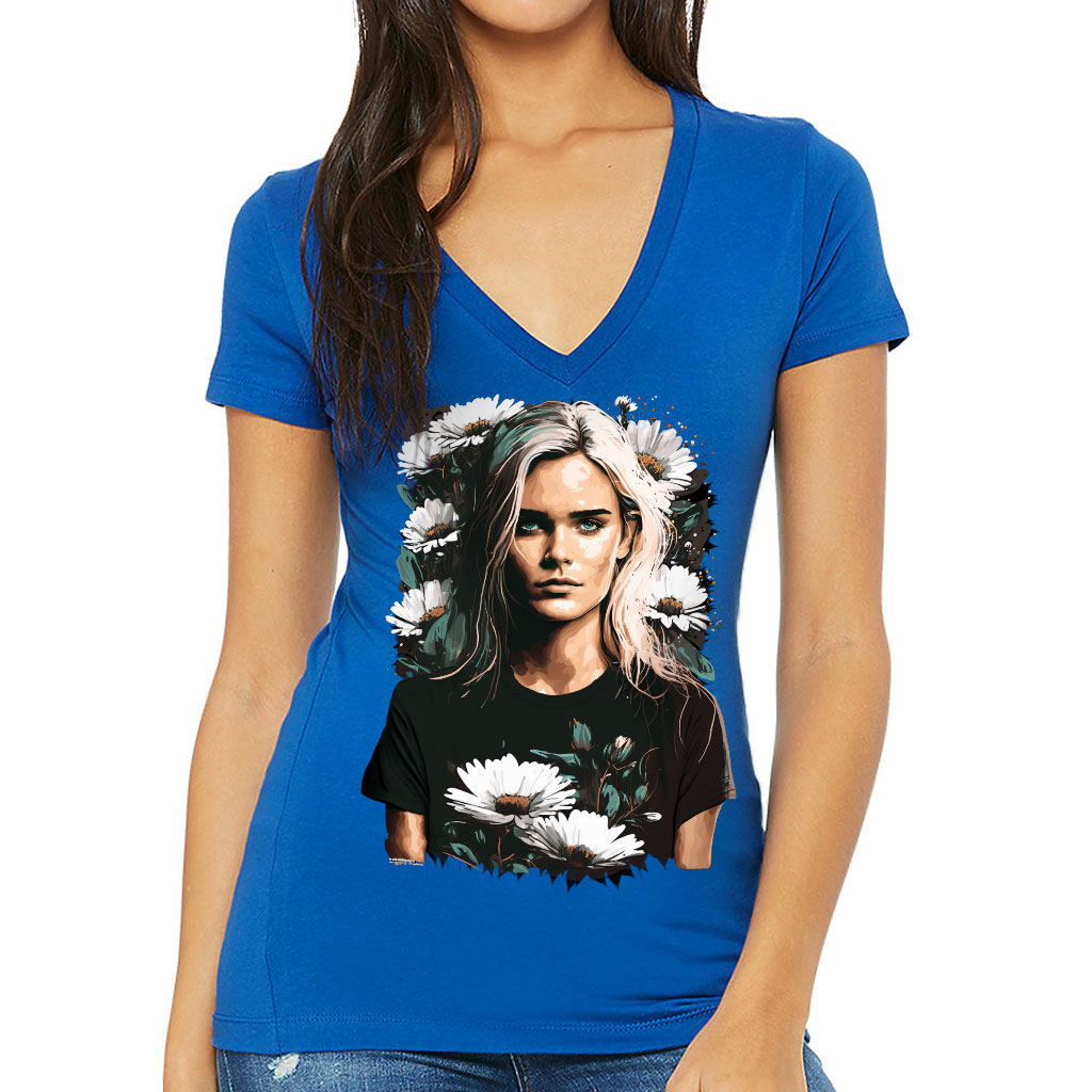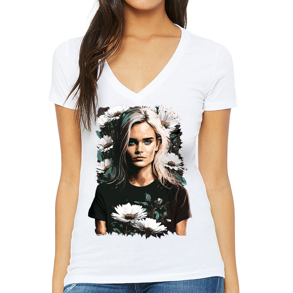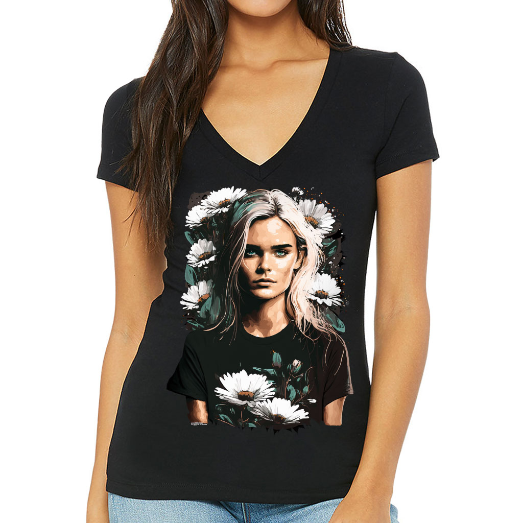 The fabric of our shirt is super soft, lightweight, breathable, and cozy. Daisy Flower Women’s V-Neck T-Shirt features a modern feminine fit, deep V-neck, short sleeves and superior Airlume combed and ring-spun cotton.