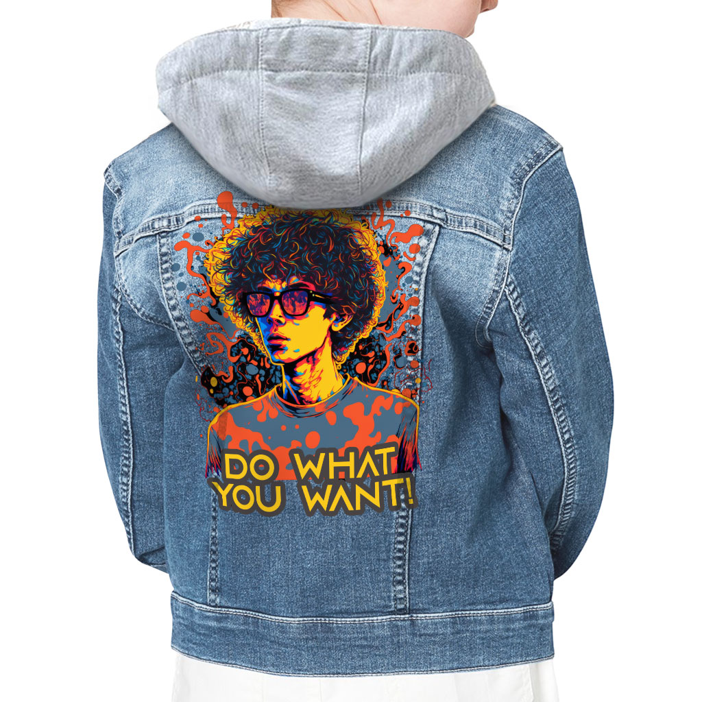Do What You Want Hooded Denim Jacket for Kids is made from premium material with comfort in mind. It is meant to be worn casually around the house, at a party, or on a night out with friends, etc. It is always trendy.