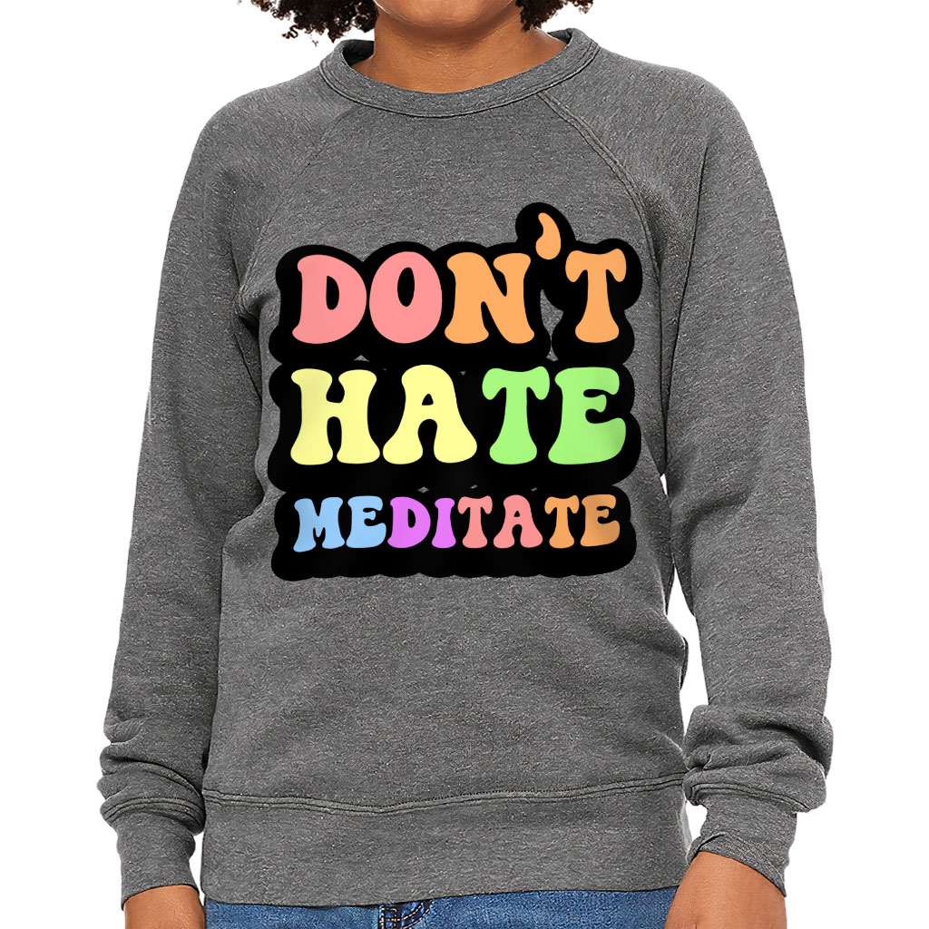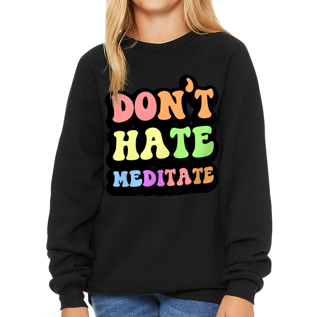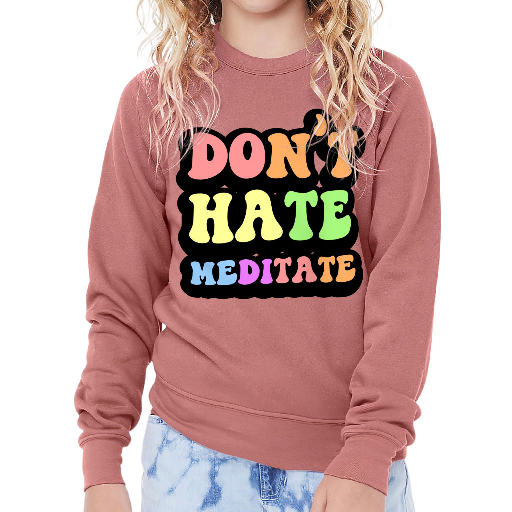 Don’t Hate Meditate Kids’ Raglan Sweatshirt – Colorful Sponge Fleece Sweatshirt – Cute Sweatshirt