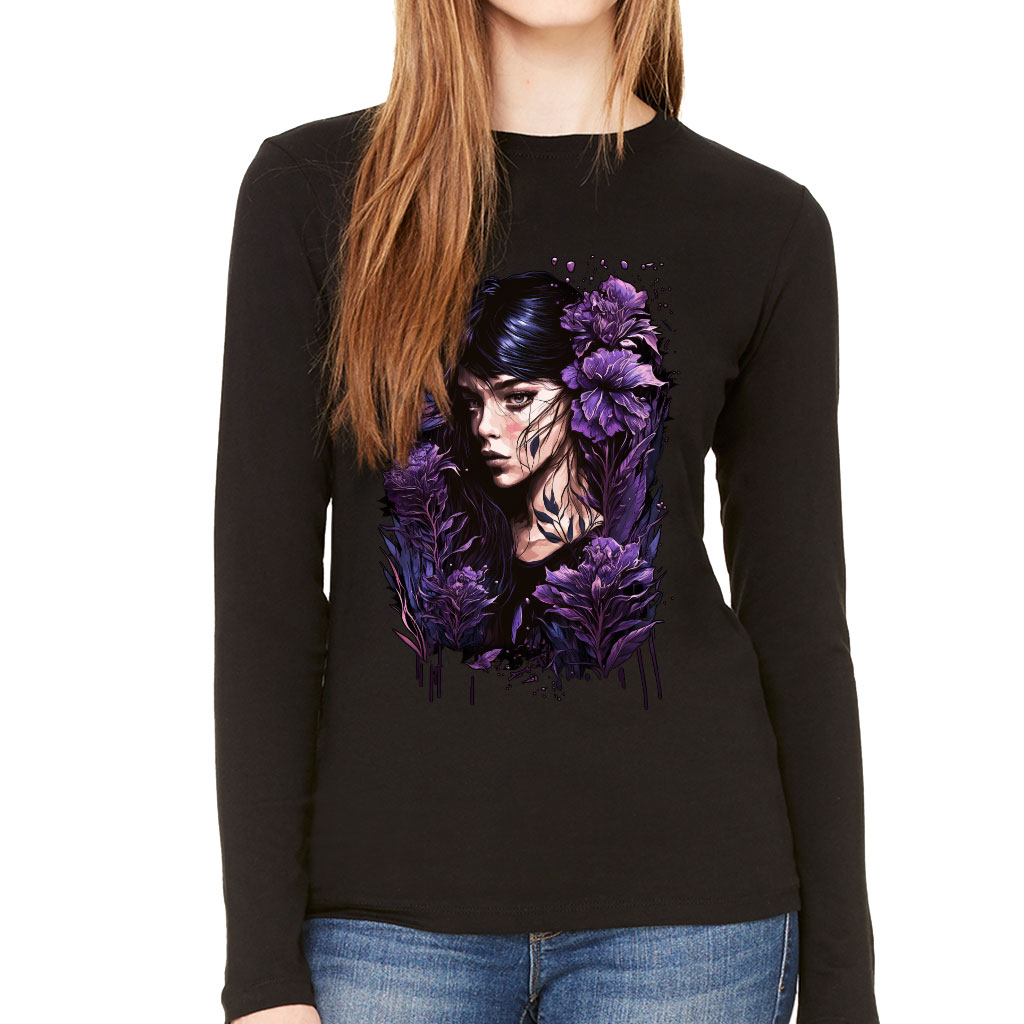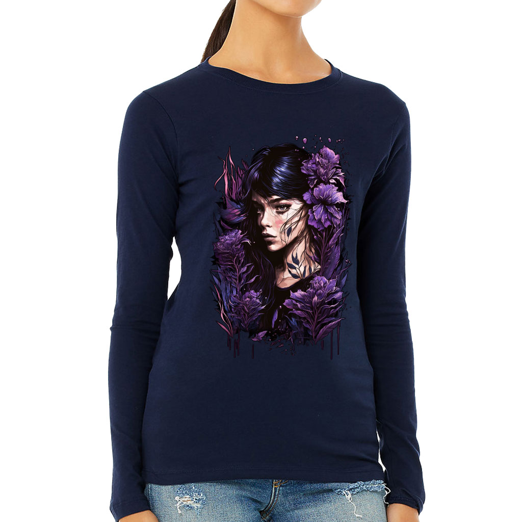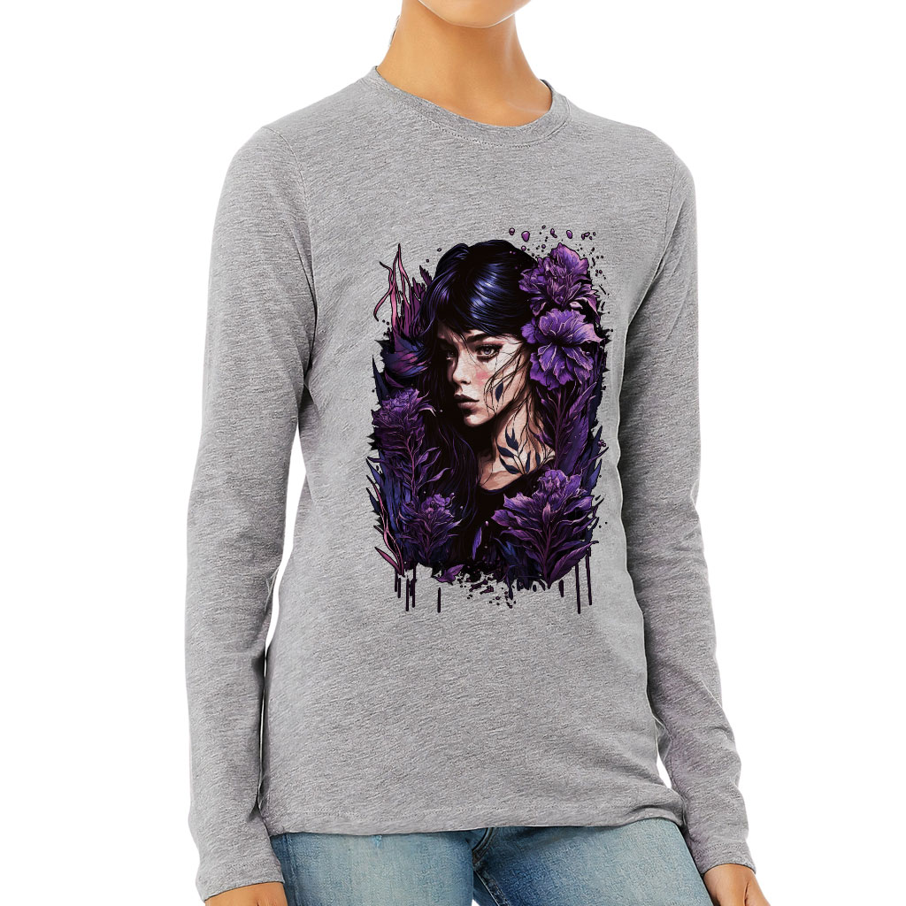 Floral Design Women’s Long Sleeve T-Shirt – Flower Graphic Long Sleeve Tee – Cool Art T-Shirt