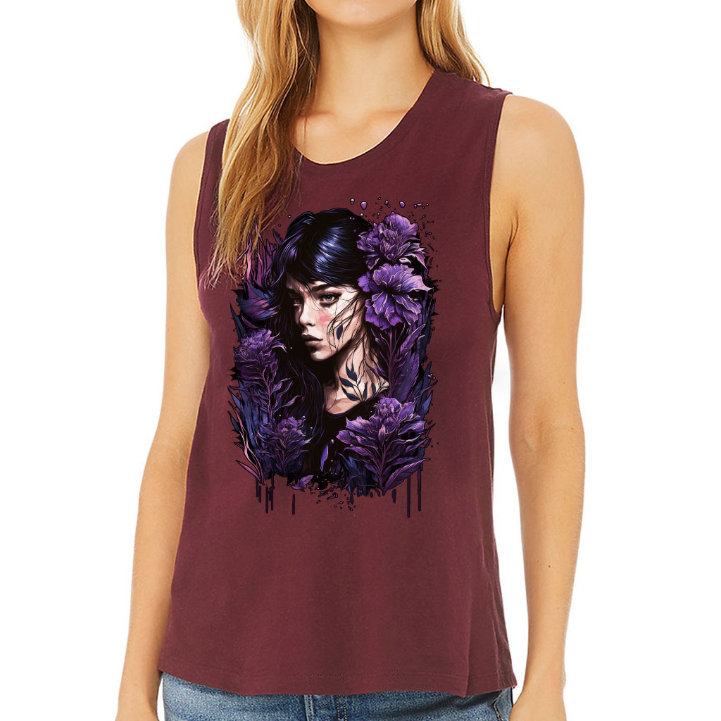 Floral Design Women’s Muscle Tank is made from high-quality materials. The soft fabric fits perfectly to the body and suits any type of figure. Our products will make your everyday comfortable, as well as add charm to your image and emphasize your style.