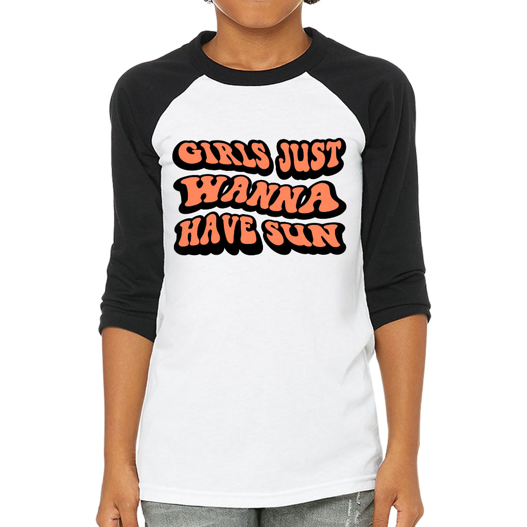 Girls Just Wanna Have Sun Kids’ Baseball T-Shirt