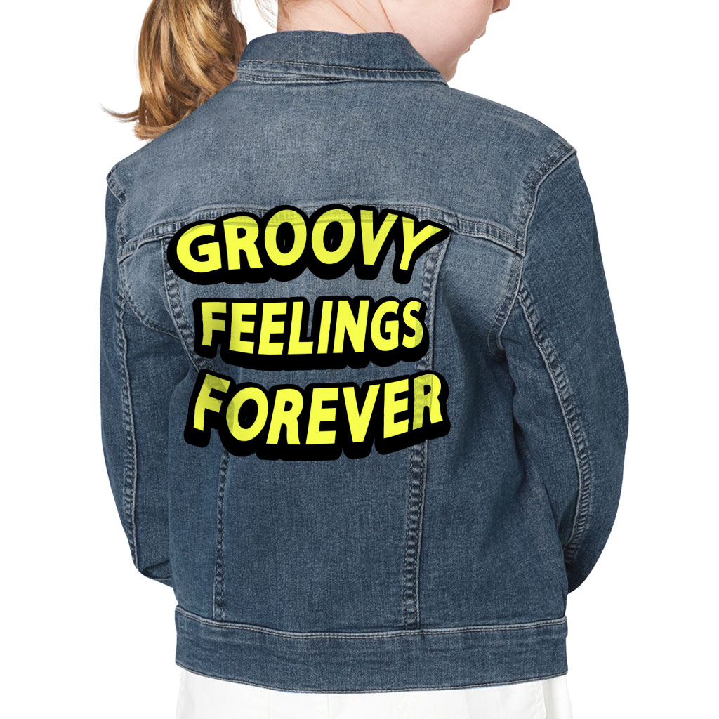 Groovy Feelings Forever Kids’ Denim Jacket – Cute Quote Jean Jacket – Themed Denim Jacket for Kids