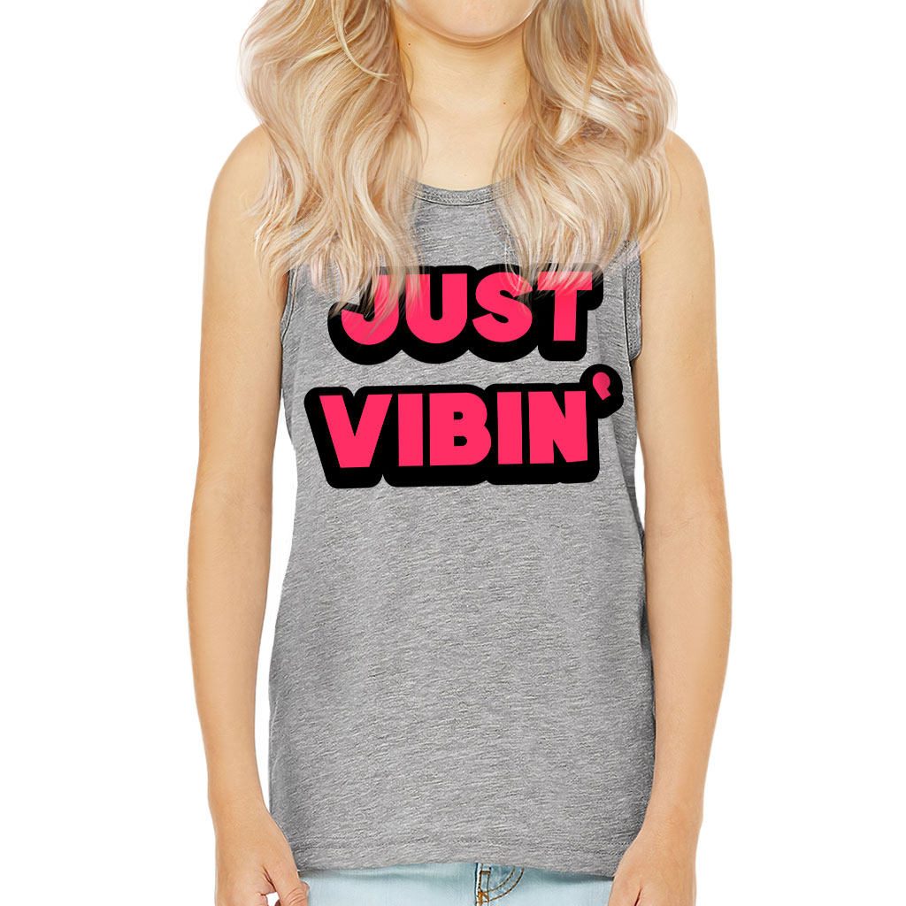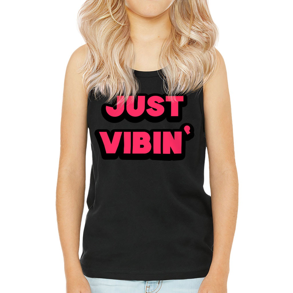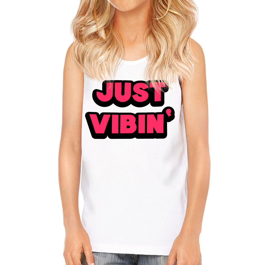 Just Vibin’ Kids’ Jersey Tank – Cool Printed Sleeveless T-Shirt – Cute Design Kids’ Tank Top