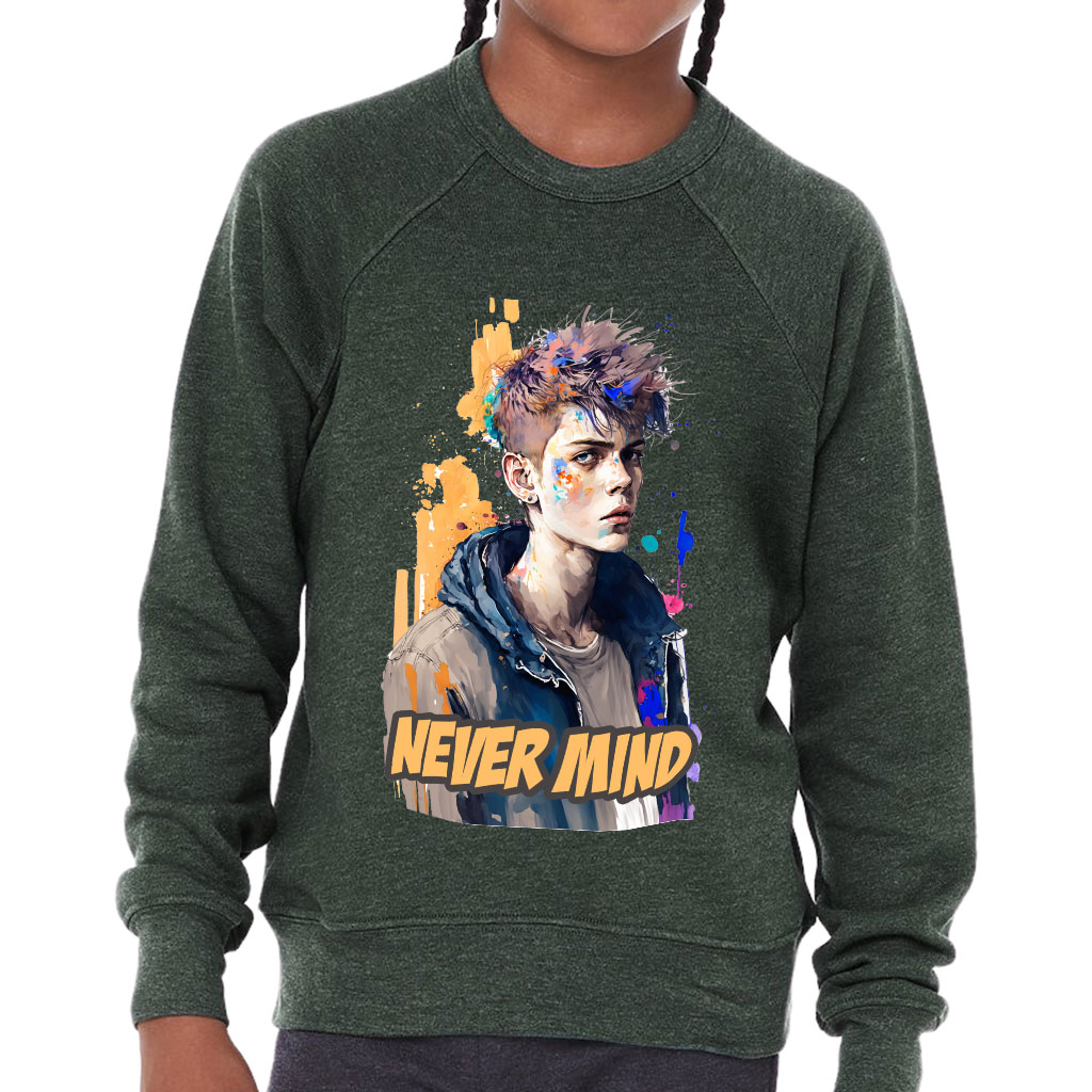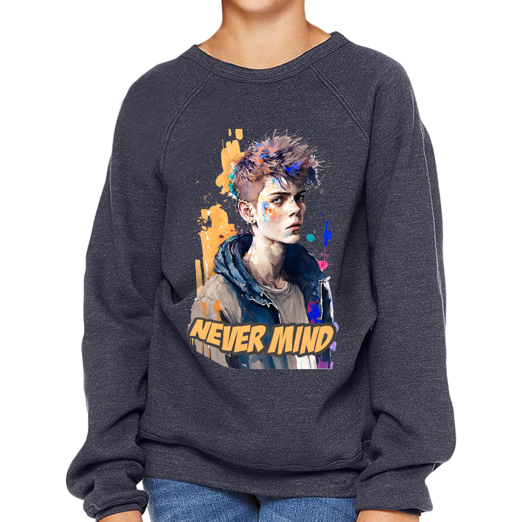 Never Mind Kids’ Raglan Sweatshirt will be a great gift for Birthdays, graduation ceremonies, Christmas, Thanksgiving, or any special event. Your loved ones will be pleased with such a sign of attention from you.