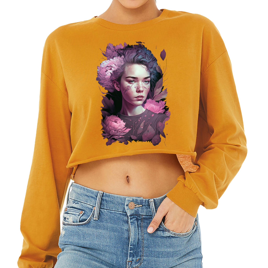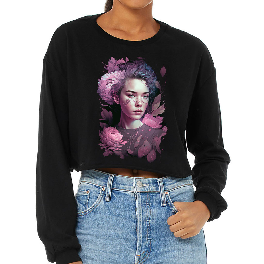 Soft but durable cotton material will never let you down. Peony Cropped Long Sleeve T-Shirt makes you have a good wear experience all day. Suitable for summer days, parties, traveling and casual wear.