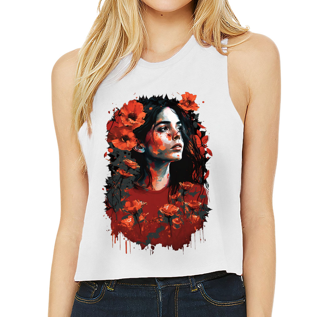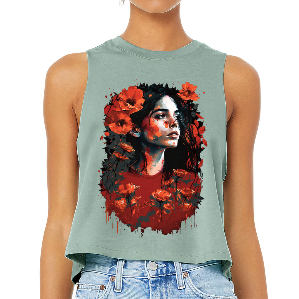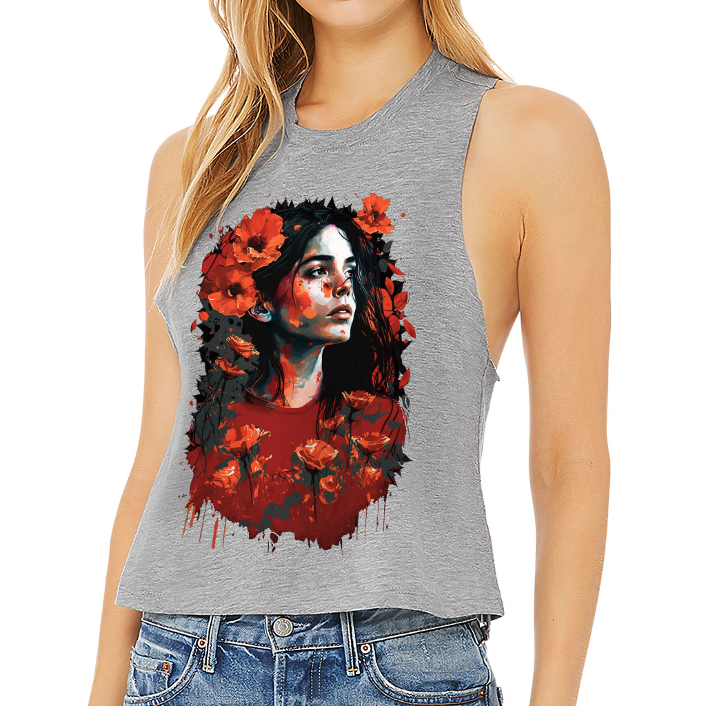 Poppy Flower Racerback Cropped Tank – Floral Design Women’s Tank – Illustration Tank Top