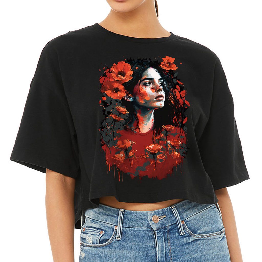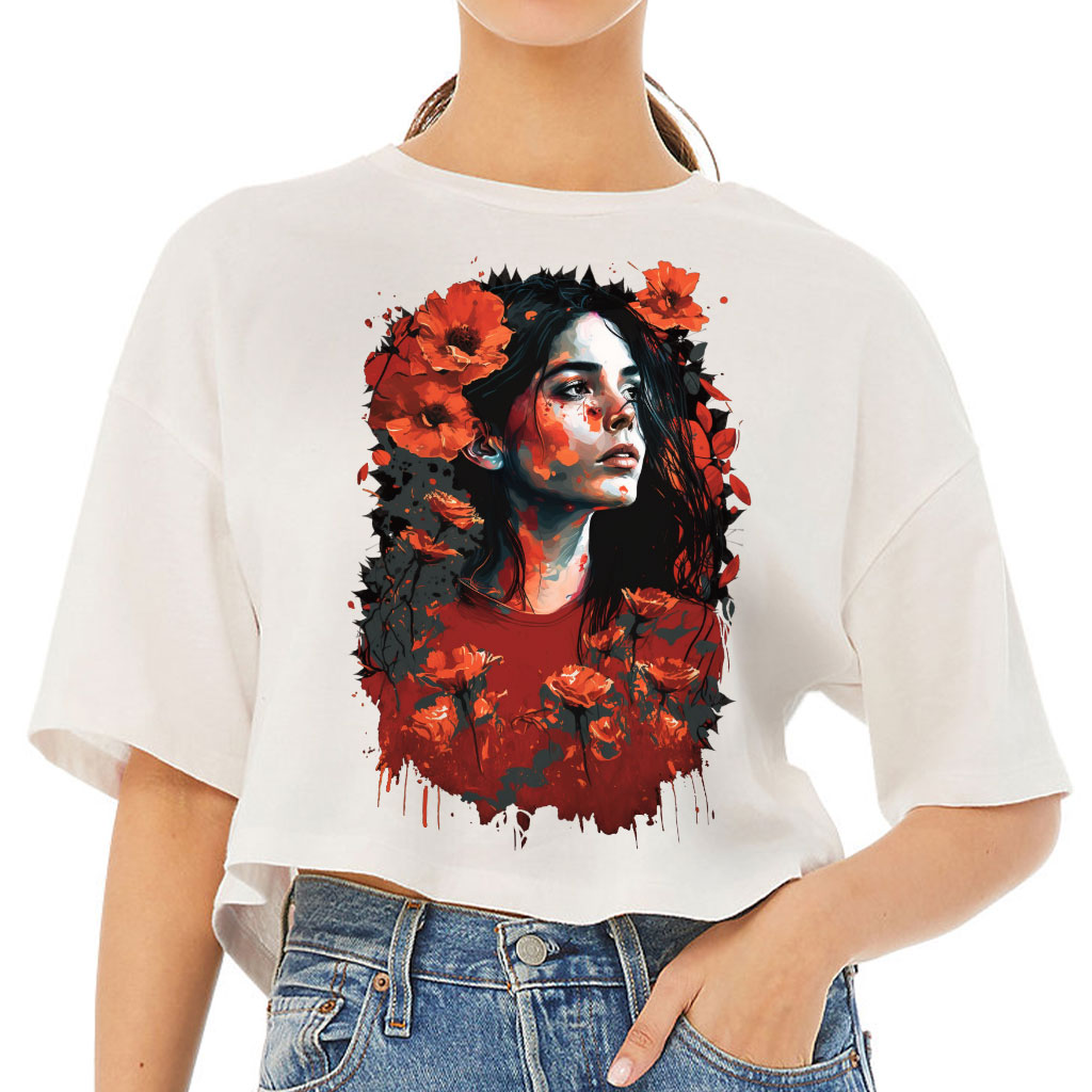 Poppy Flower Women’s Crop Tee Shirt has a great look and cool fit. No matter what time of the year it is, you have a shirt for it all! This cropped t-shirt is the perfect way to make a statement. This t-shirt is made of soft cotton, which will not easily deform, and is breathable as well as comfortable, making you feel comfy all day.