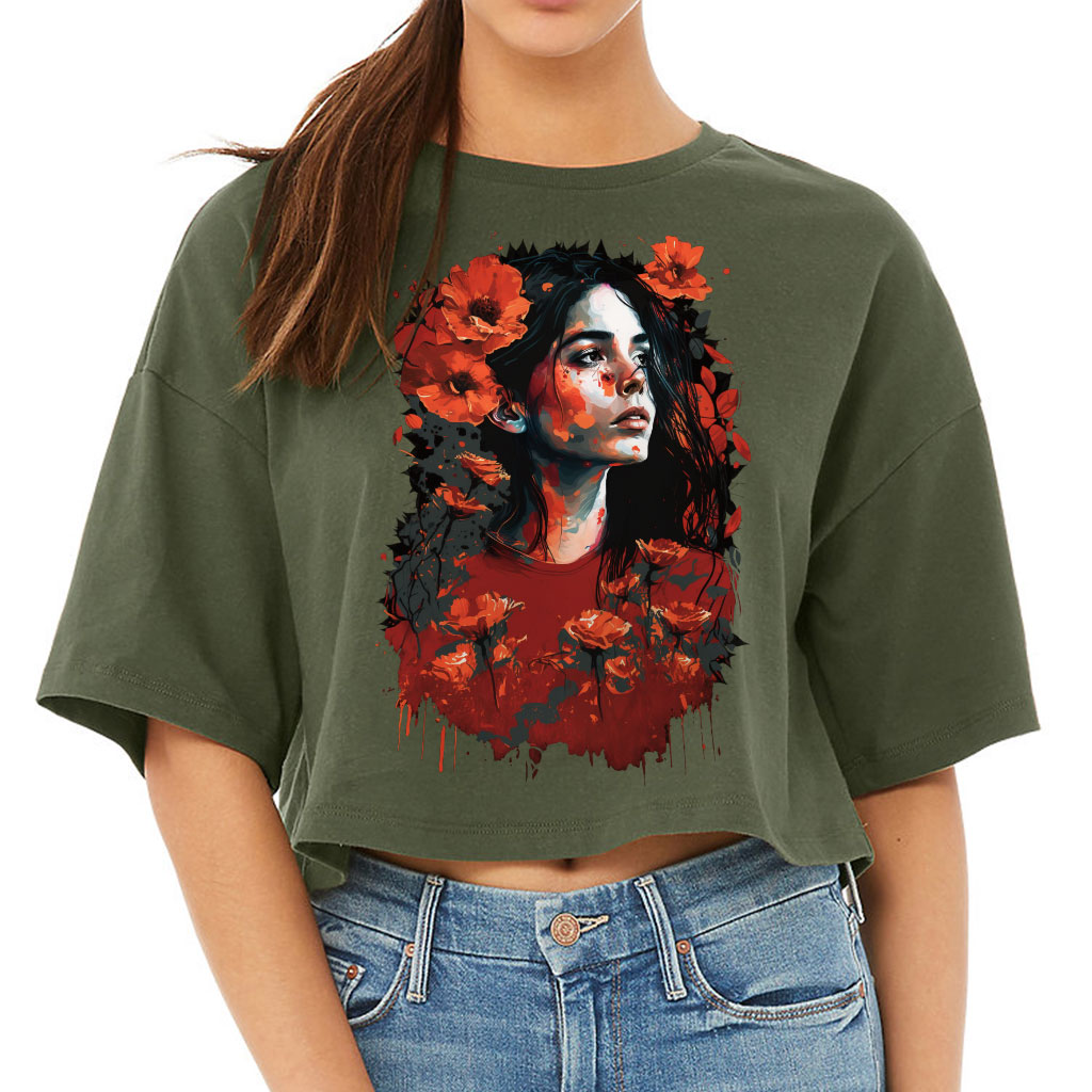 Poppy Flower Women’s Crop Tee Shirt is sure to make you stand out in a crowd! Match this shirt with shorts, jeans, leggings, sweatpants or skirts. Suitable for spring, summer, fall, winter, and all year.