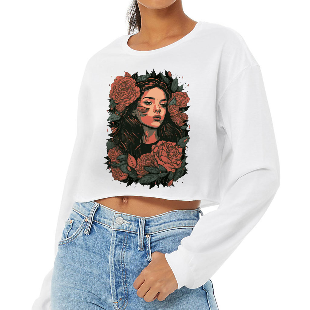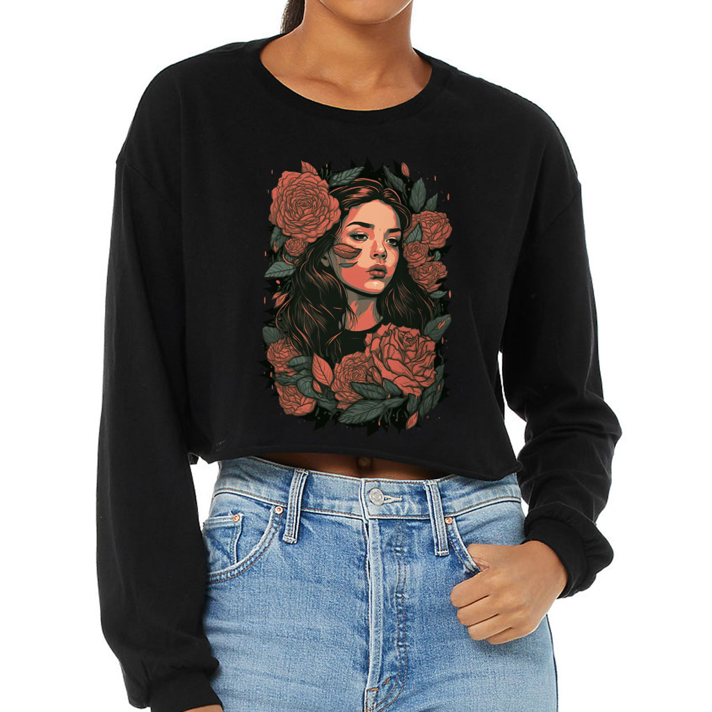 Soft but durable cotton material will never let you down. Rose Flower Cropped Long Sleeve T-Shirt makes you have a good wear experience all day. Suitable for summer days, parties, traveling and casual wear.