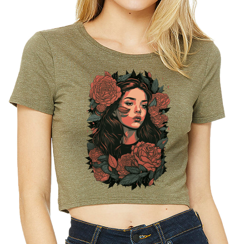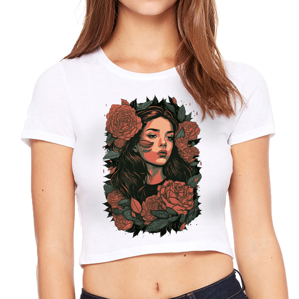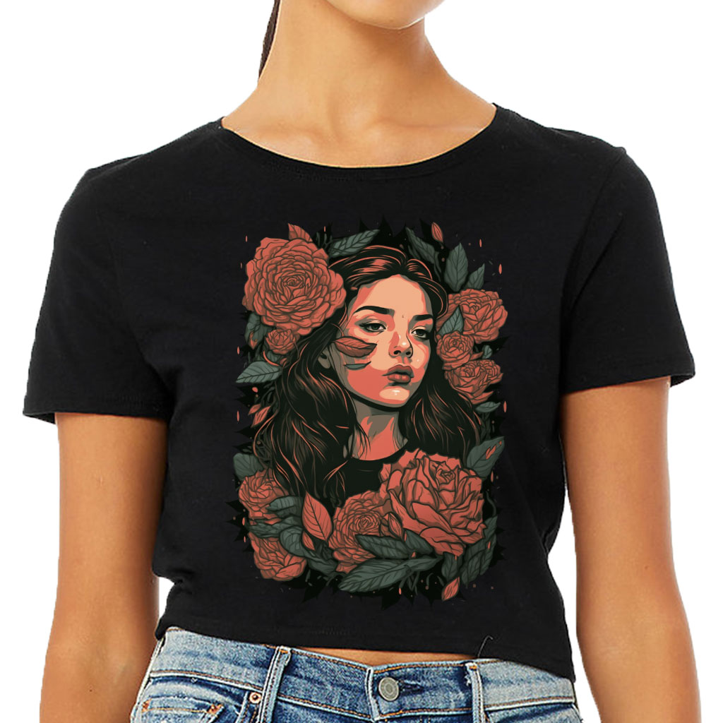 Rose Flower Women’s Cropped T-Shirt is no ordinary piece of clothing. Its form-fitting silhouette and soft fit and feel provide a retail fit for clothing that’s true to size.
