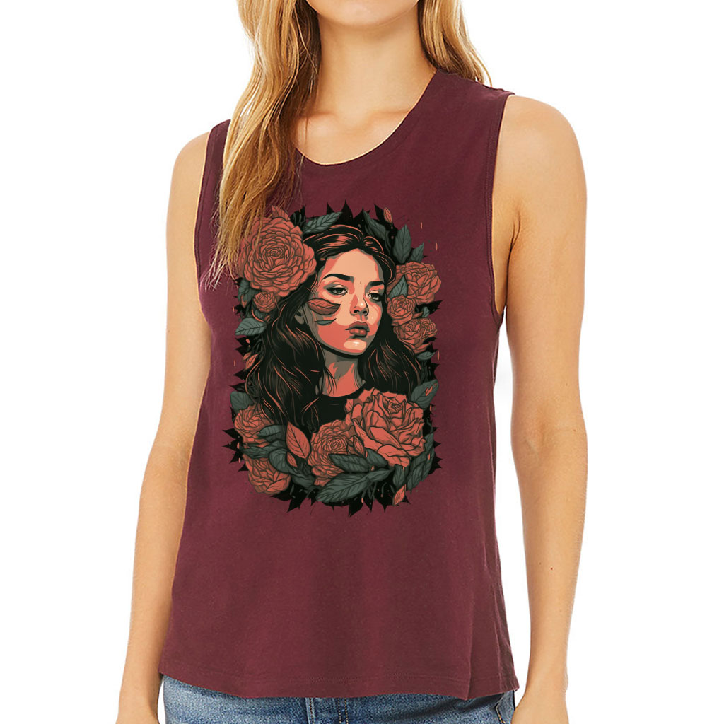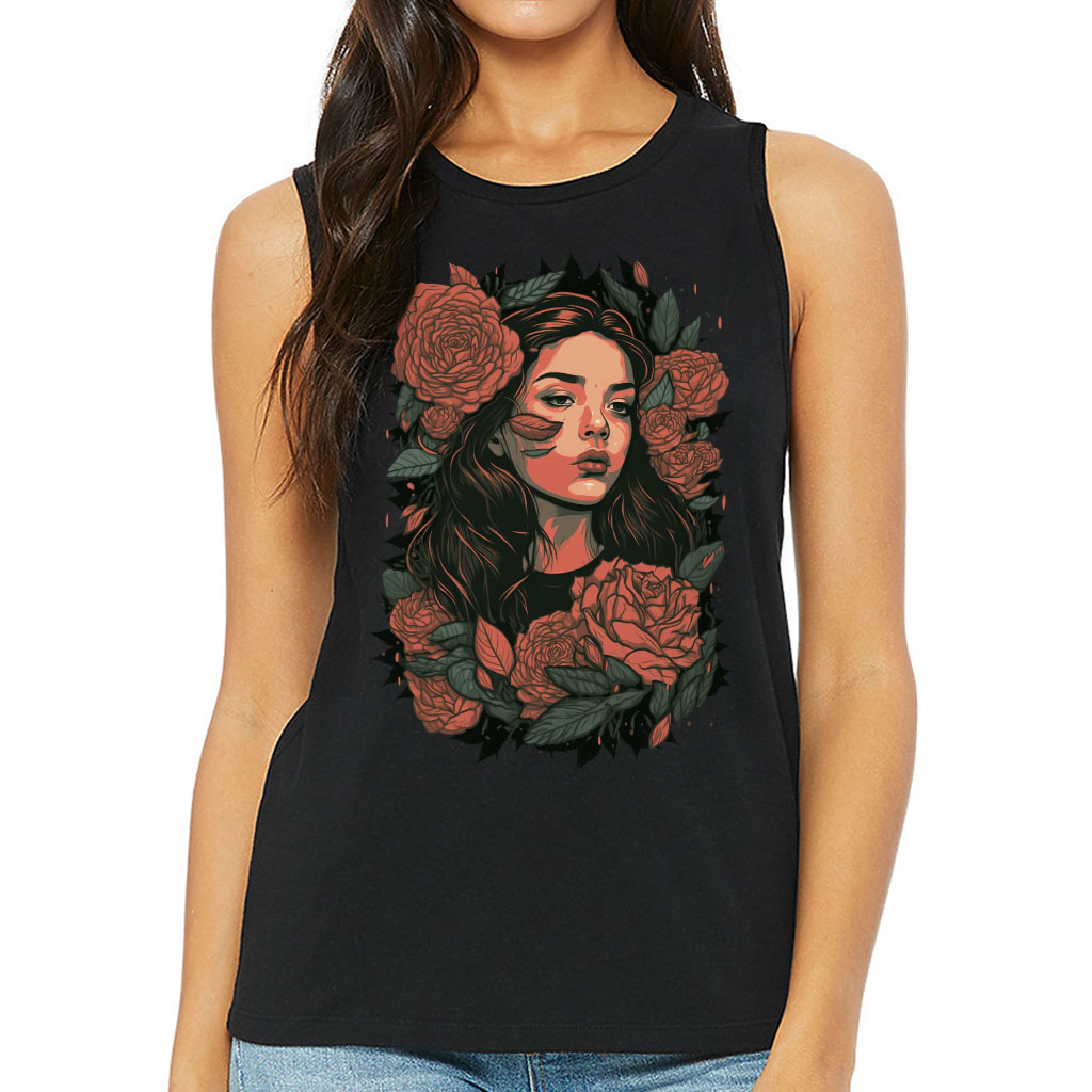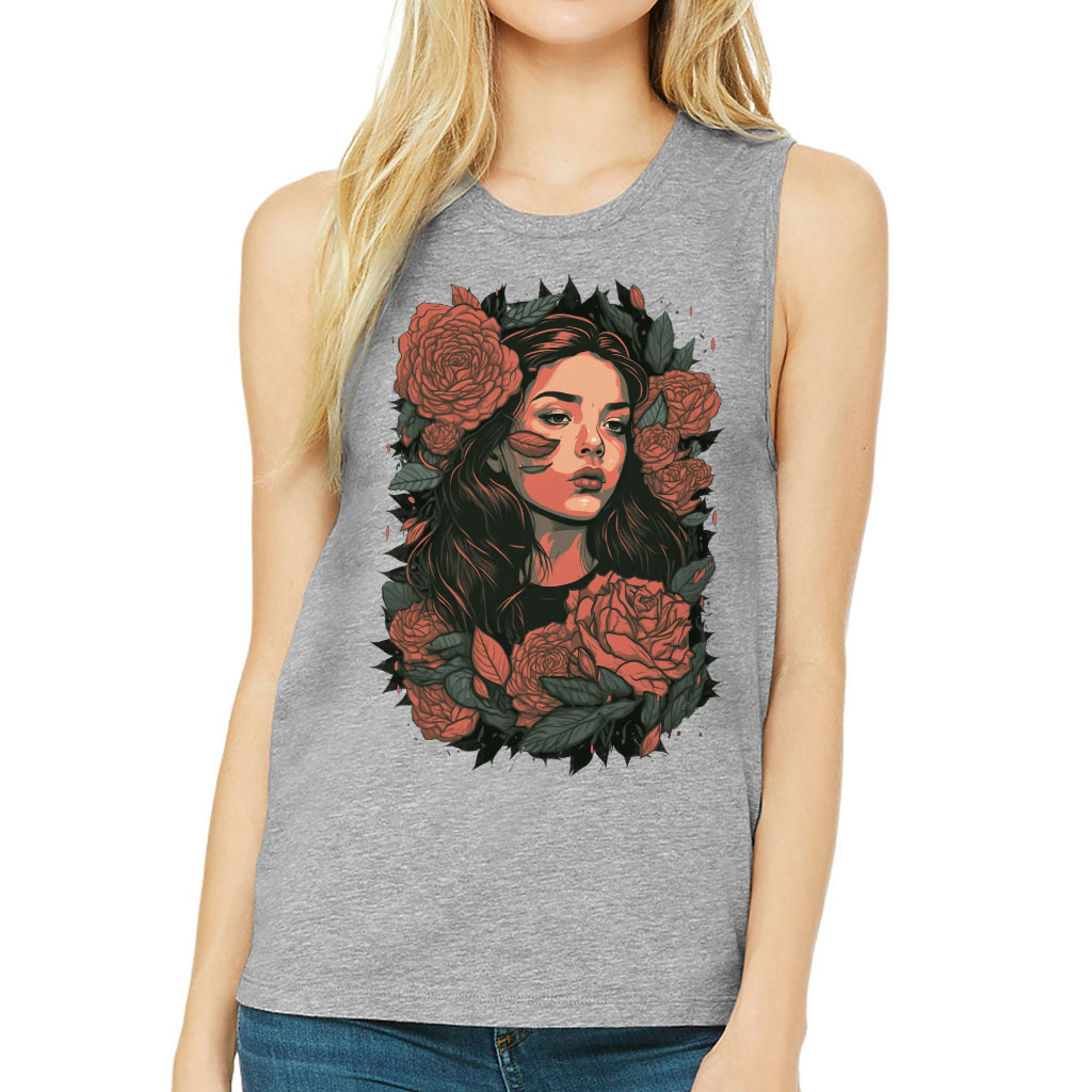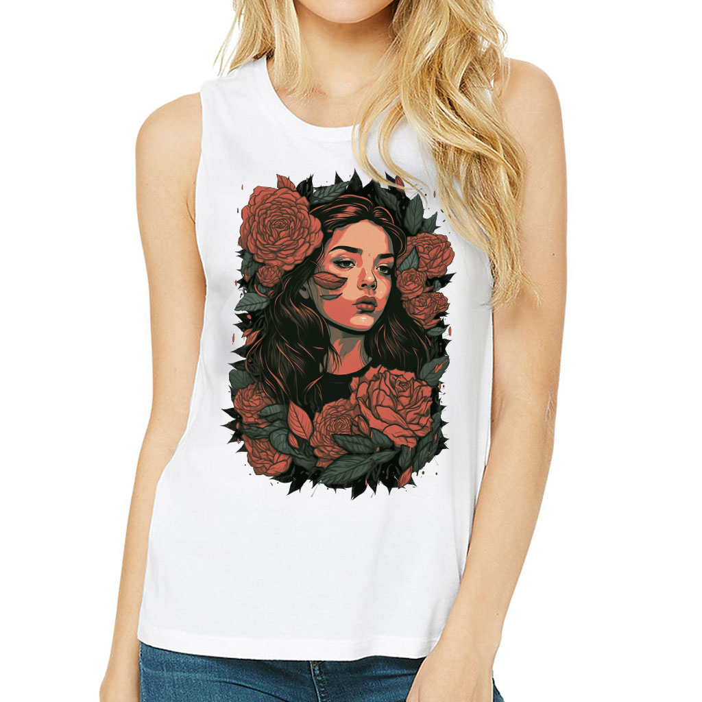 Rose Flower Women’s Muscle Tank is made from high-quality materials. The soft fabric fits perfectly to the body and suits any type of figure. Our products will make your everyday comfortable, as well as add charm to your image and emphasize your style.