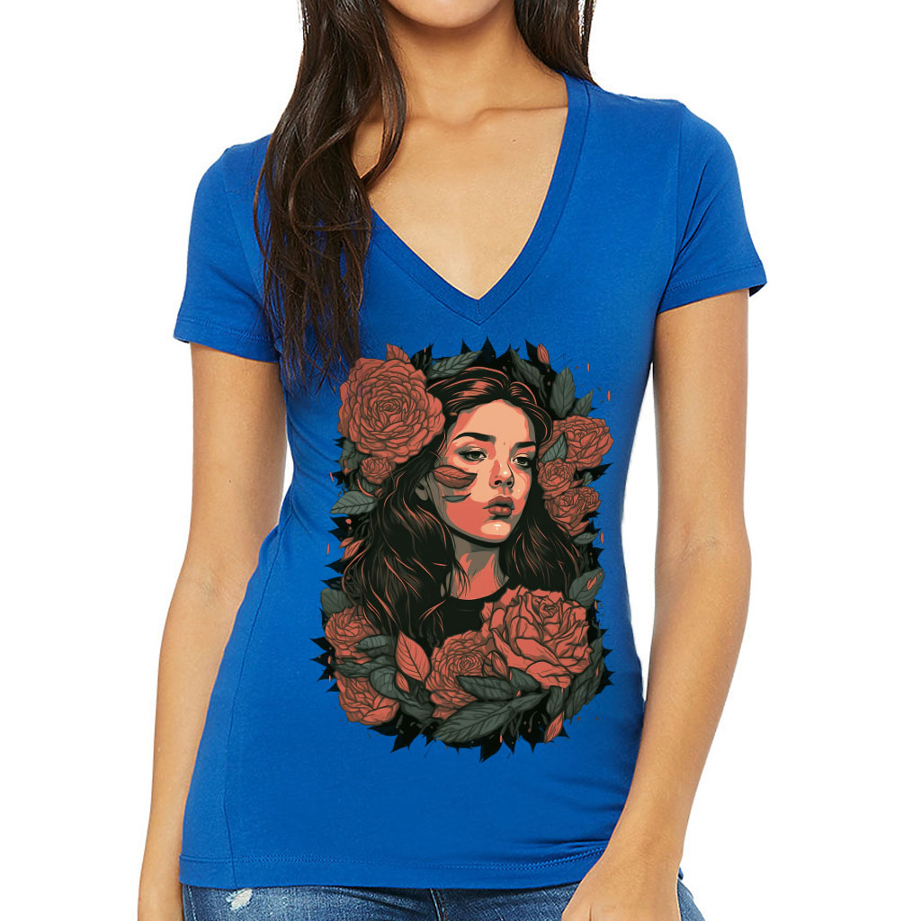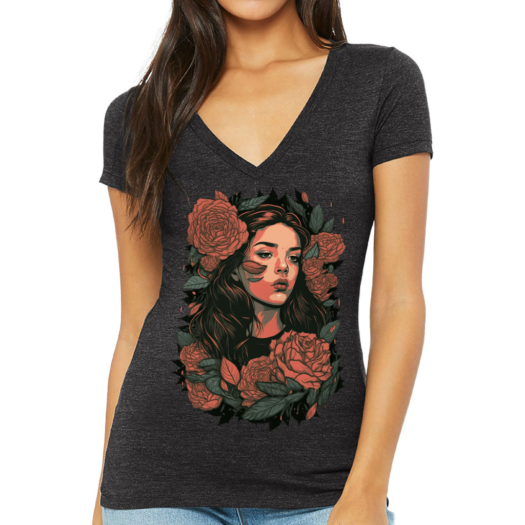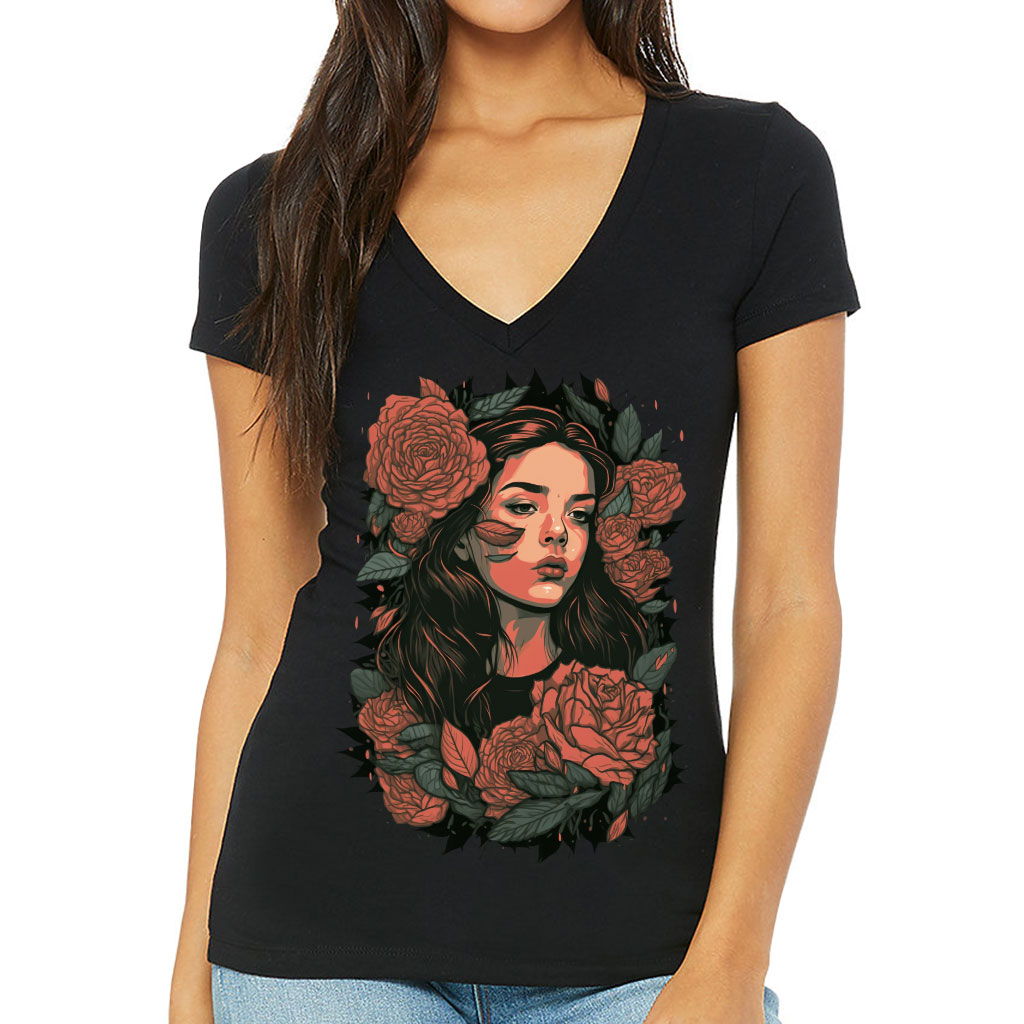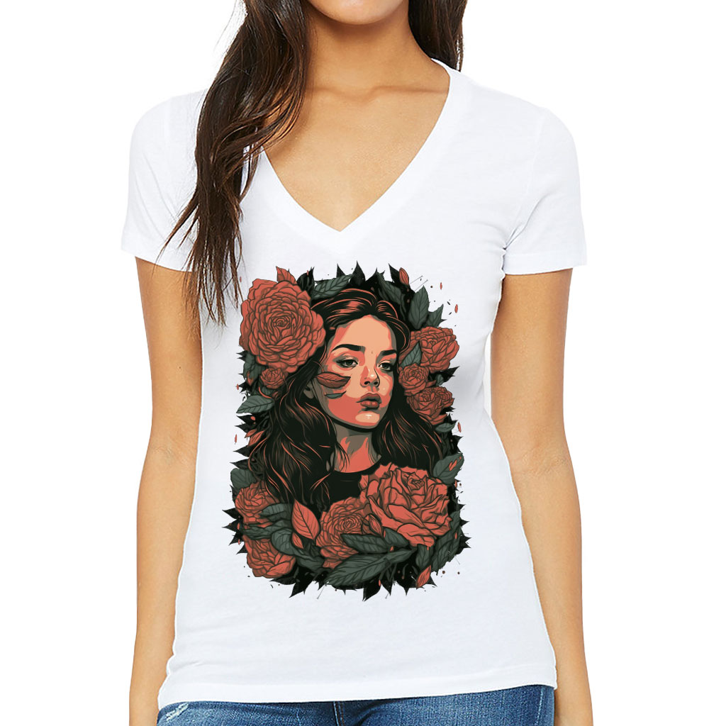 Rose Flower Women’s V-Neck T-Shirt – Creative V-Neck Tee – Graphic T-Shirt