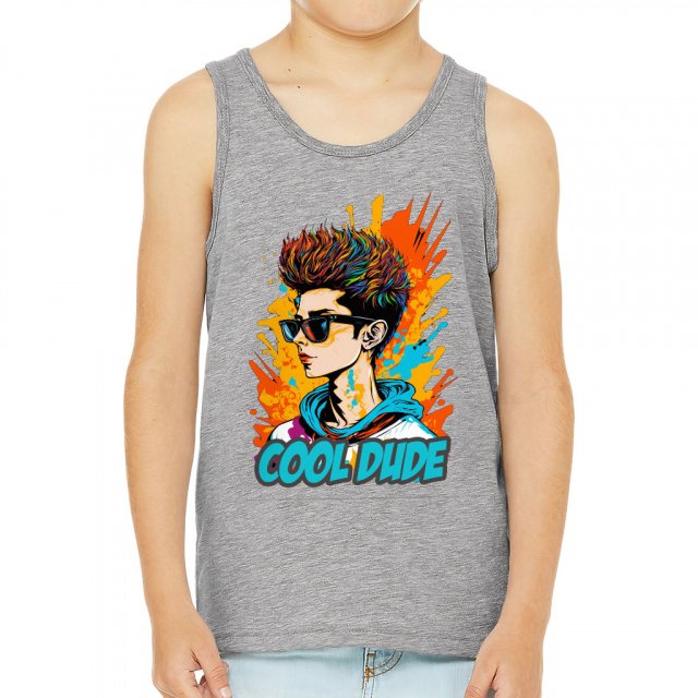Cool Dude Kids’ Jersey Tank – Trendy Sleeveless T-Shirt – Graphic Kids’ Tank Top