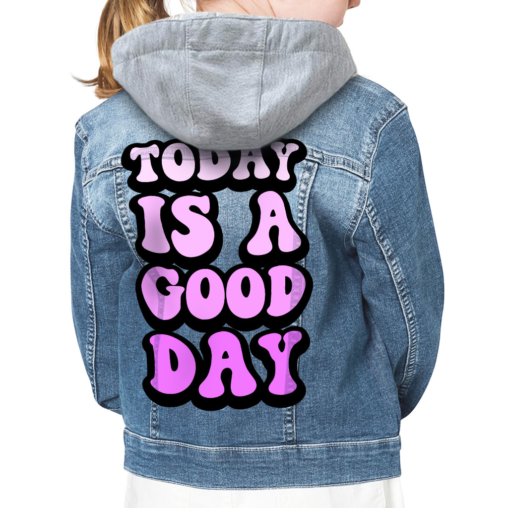 Today Is a Good Day Hooded Denim Jacket for Kids is made from premium material with comfort in mind. It is meant to be worn casually around the house, at a party, or on a night out with friends, etc. It is always trendy.