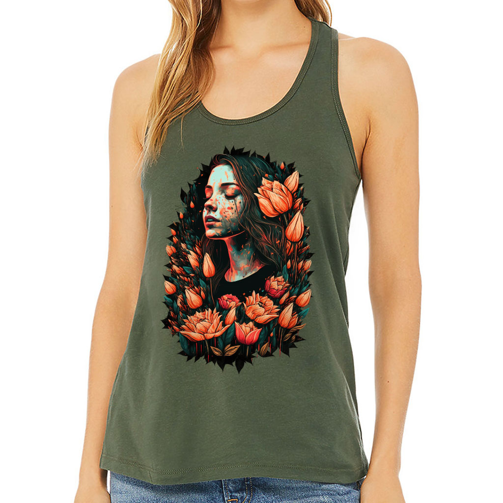 Tulip Print Women’s Racerback Tank features a flattering racerback, relaxed fit. Wearing our ideal racerback tank, women will feel the ultra-softness of cotton. This product never disappoints if you want a piece of clothing to feel cool and comfortable at the same time.