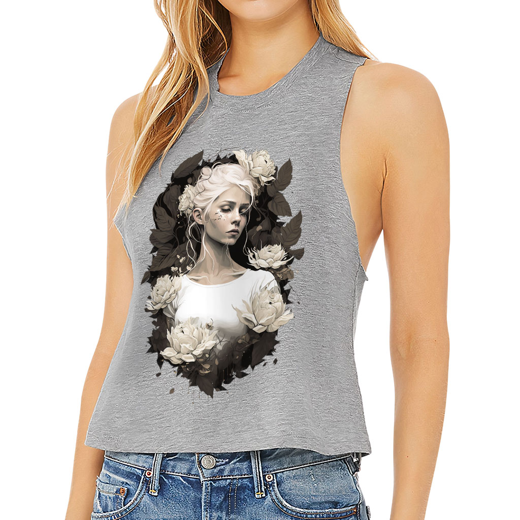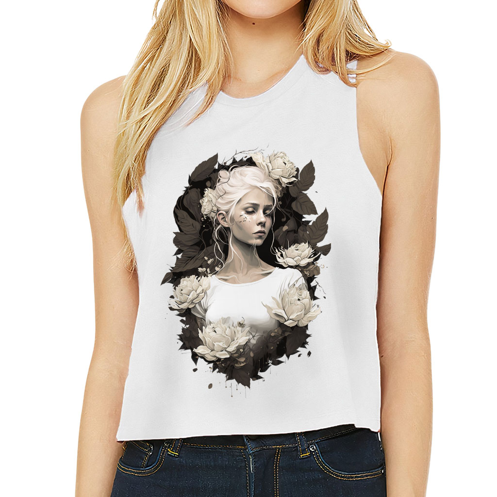 Show off your style with Flower Women’s Tank! This cool and comfortable top is just what your wardrobe needs. Featuring a side-seamed relaxed fit that falls softly from the shoulders to a cropped finish, it’s perfect for flaunting your figure. Brass-colored raw edge arm holes and a racerback provide an extra touch of stylish detail to this charming tank. Wear Artwork Tank Top out and about or keep it for relaxing days at home – the perfect way to stay one step ahead in style!