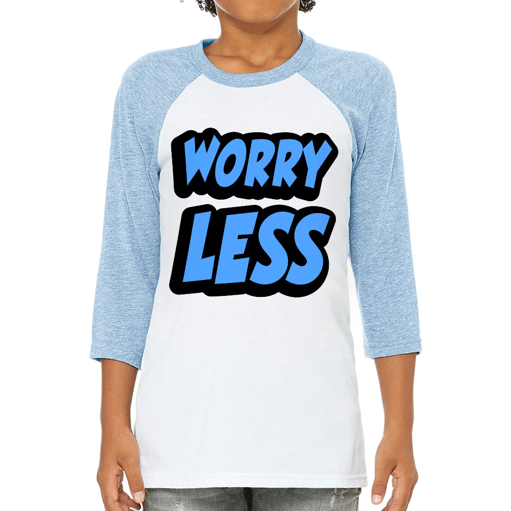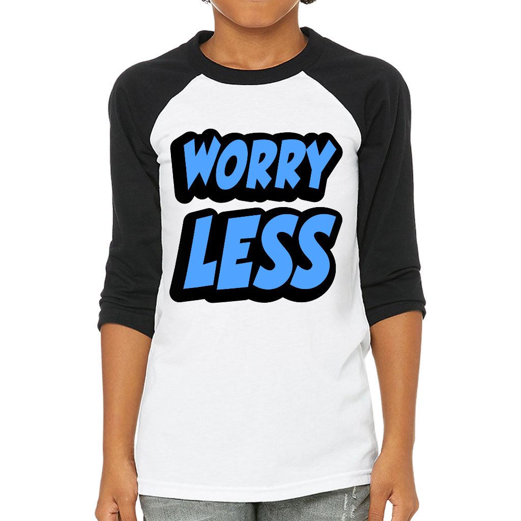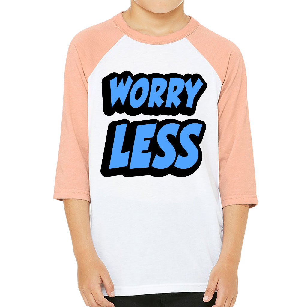 Worry Less Kids’ Baseball T-Shirt – Motivational 3/4 Sleeve T-Shirt – Cool Printed Baseball Tee